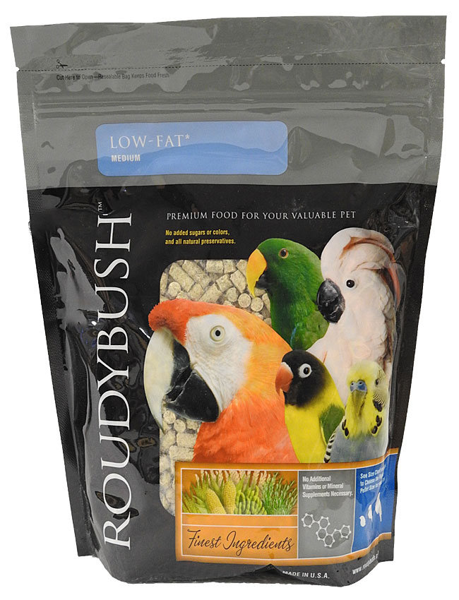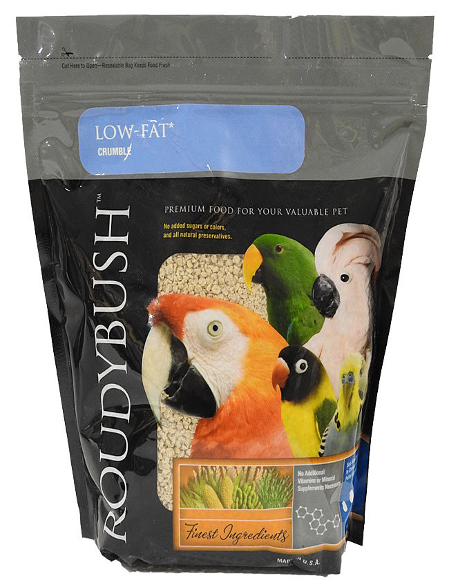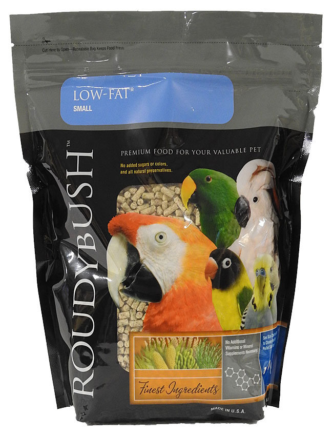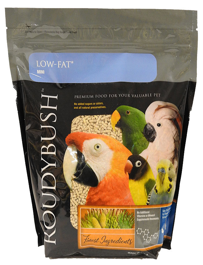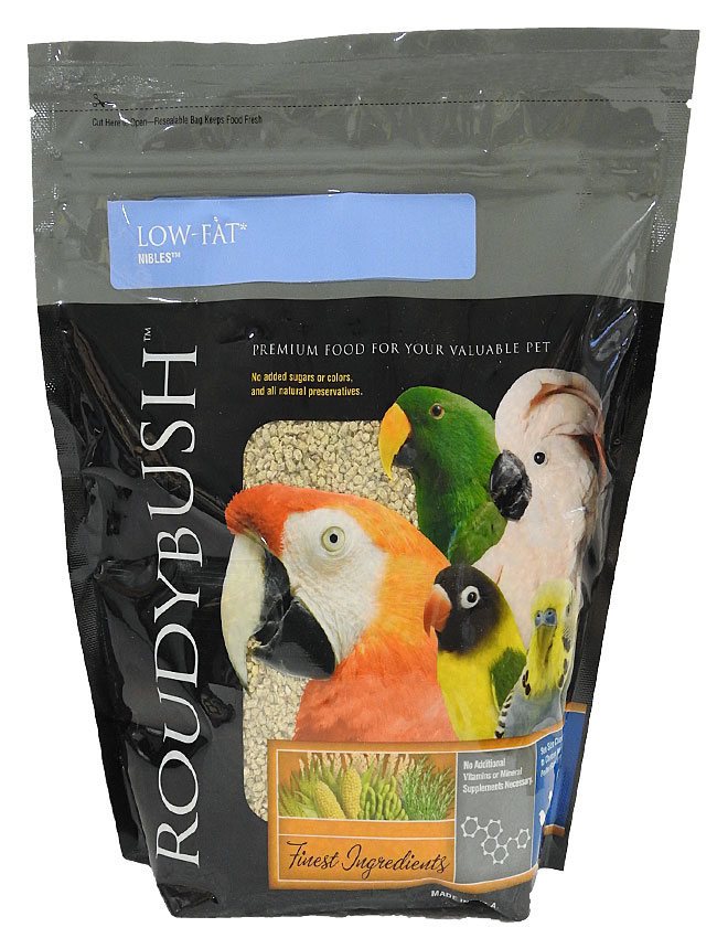 Obezitatea este o problemă comună la păsările de companie, ca urmare a  lipsei de exercițiu, precum și a unui surplus de semințe care conțin o cantitate mare de grăsime, cum ar fi semințele de floarea-soarelui, semințe de cânepă și nuci. Papagalii supraponderali pot fi predispuși la boli care le pot pune viața în pericol. Formula Low Fat a fost concepută special pentru păsări cu cerințe energetice mai mici. Aceste specii includ, printre altele, papagali Eclectus, Amazonieni, cele mai multe specii de Cacadu, de asemenea Cockatiel și Peruși, dar și orice alte păsări exotice supraponderale. Din acest motiv, această formulă are un conținut redus de grăsimi și un continut consistent de aminoacizi esențiali de înaltă calitate și vitamine. Pentru păsările mai puțin active și/sau fără zbor, Roudybush Low Fat poate fi folosit ca hrană pentru întreținere. (Se recomandă monitorizarea regulată a greutății).